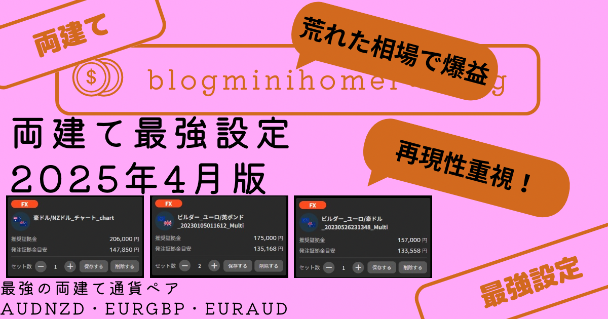 ぜひ、このAUDNZD、EURGBP、EURAUDの両建て最強設定でガツガツ利益を積み上げて見てください!