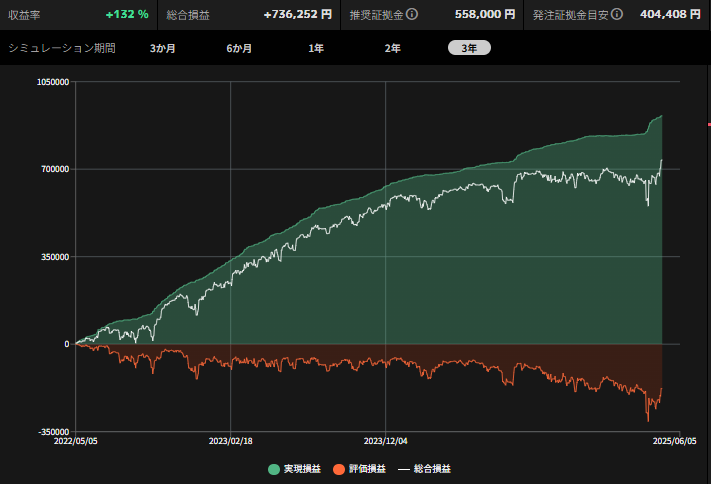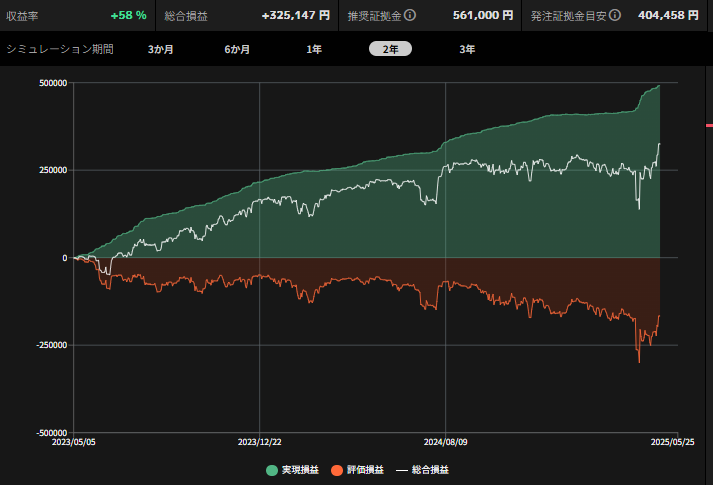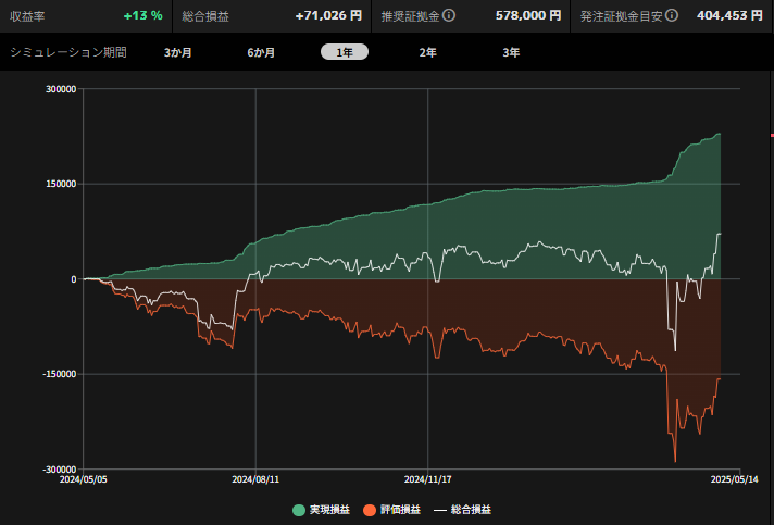 必要証拠金は40〜50万程度ですので、だいぶ優秀な結果と言えます。