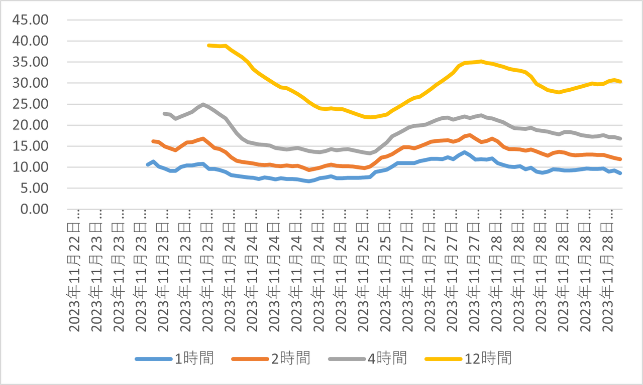 また、「当該期間」については、日足と1時間足を用いており、さらに日足値から2日足、5日足、1時間足から2時間足、4時間足、12時間足を算出しました。