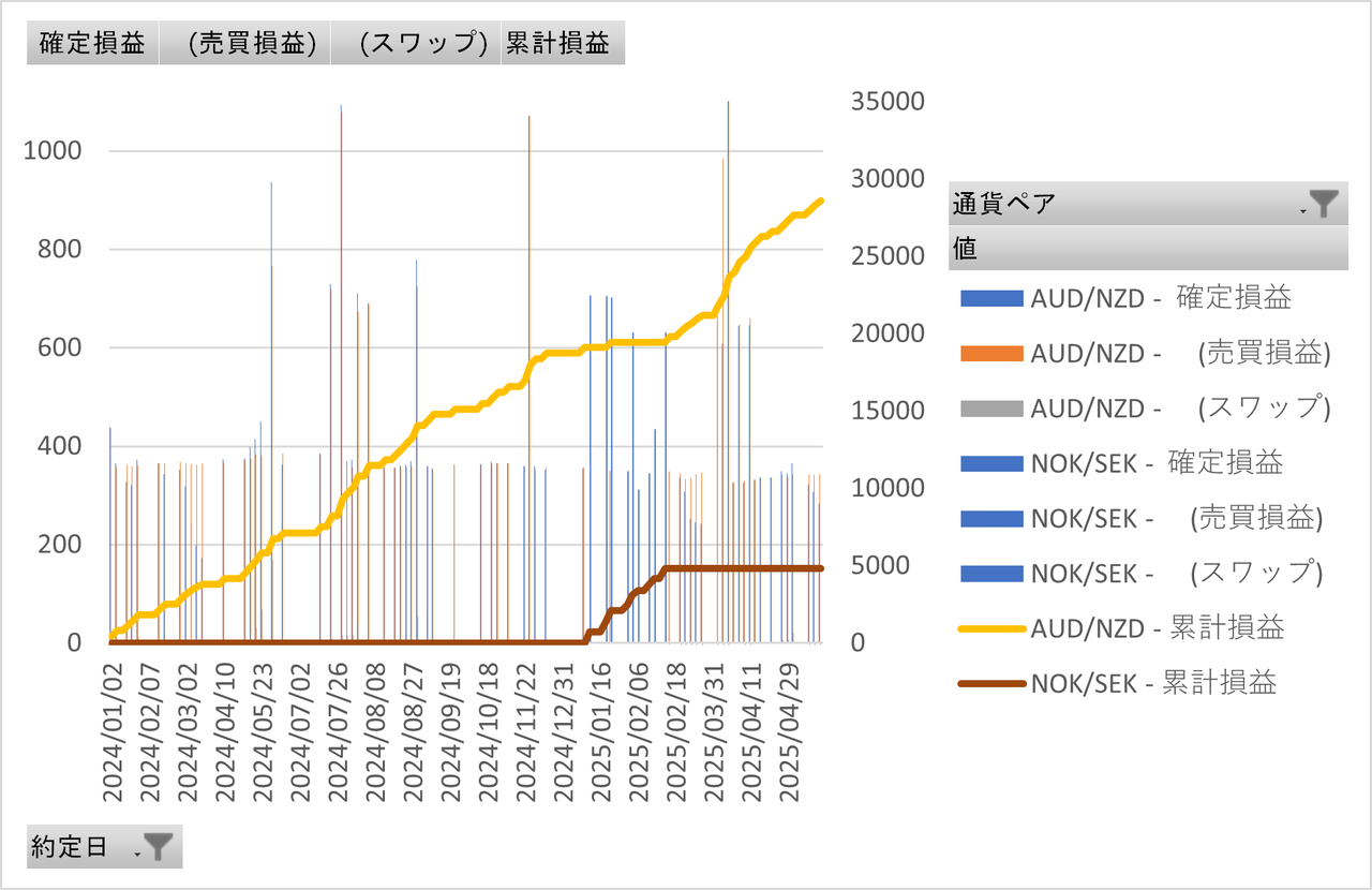 累計損益も33,000円を超え、さらにNOKSEKも利確が始まり、より実績報告らしくなってきています。