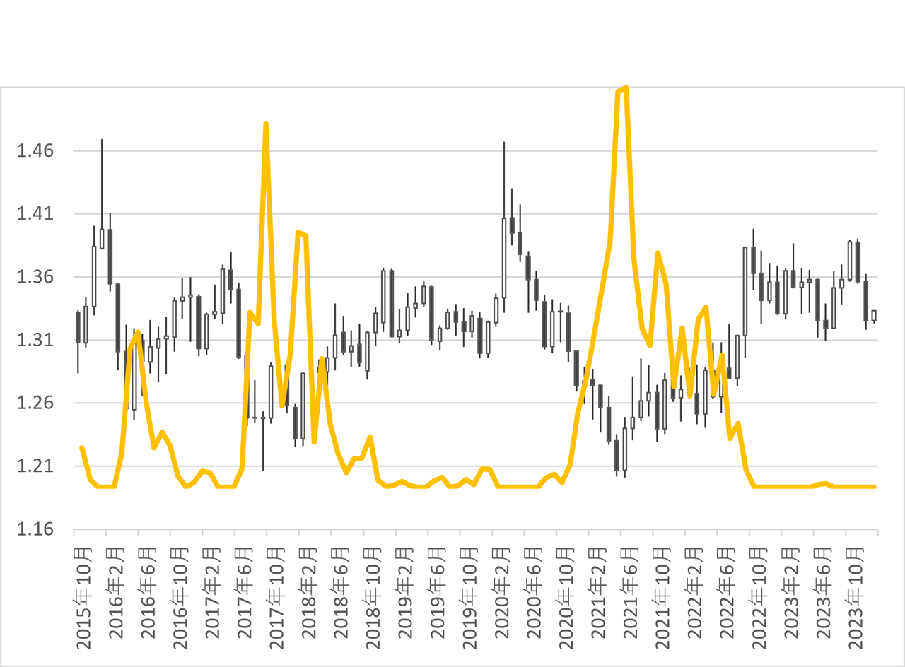 最安値:1.16000カナダドル、最高値:1.48250カナダドル というイメージです。