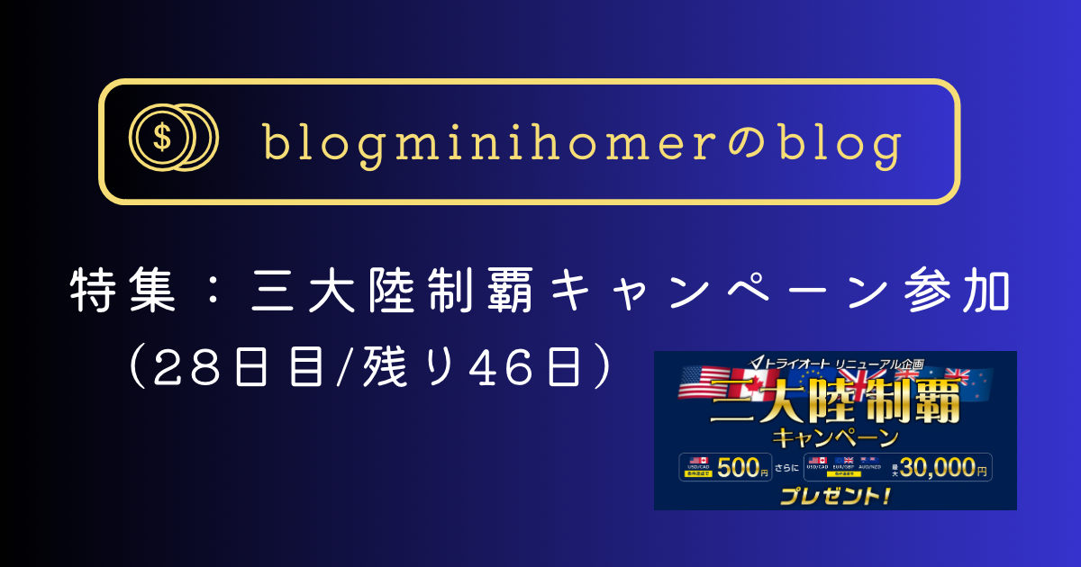 この記事では2023年12月17日にリニューアルしたインヴァスト証券トライオートFXの、三大陸制覇キャンペーンに参加し条件達成するまでを報告していきます。