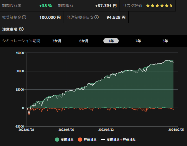 推奨証拠金:100,000円程度(シミュレーション期間により前後します)