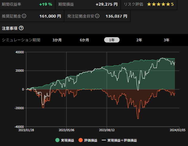 推奨証拠金:160,000円程度(シミュレーション期間により前後します)