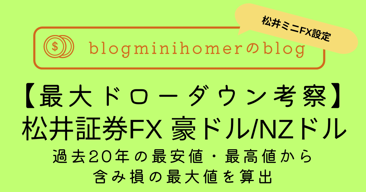 この記事ではそんな私の松井証券FX(matsuifx) 松井ミニFXの自動売買設定「豪ドル/NZドル」の最大ドローダウンについての考察を報告していきます。
