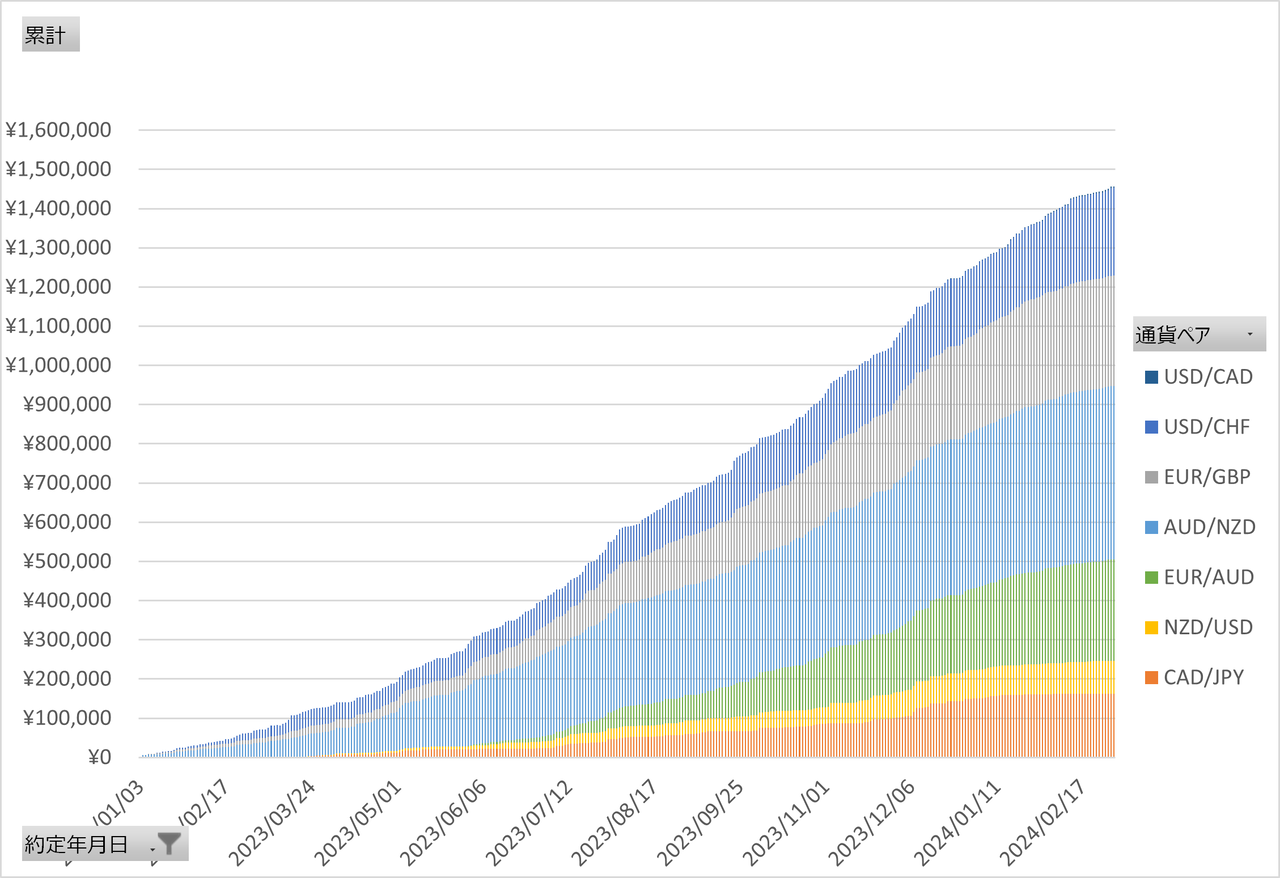 2023年1月からの日次で積みあがっていく利益の推移を公開します。
