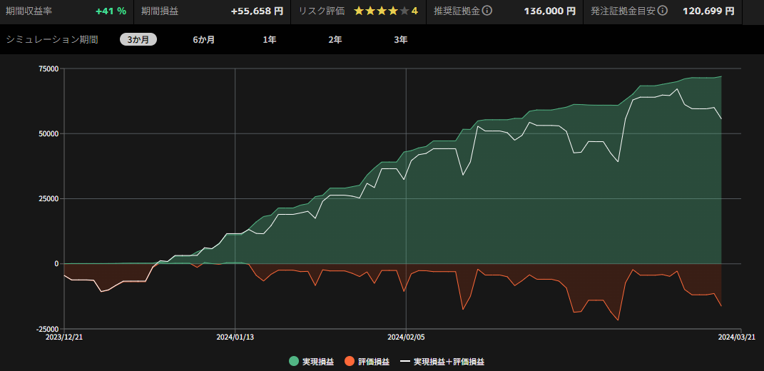 3カ月の期間収益率40%を超え、十分に稼いでくれる設定と言えます。