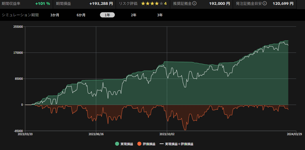 推奨証拠金:190,000円程度(シミュレーション期間により前後します)