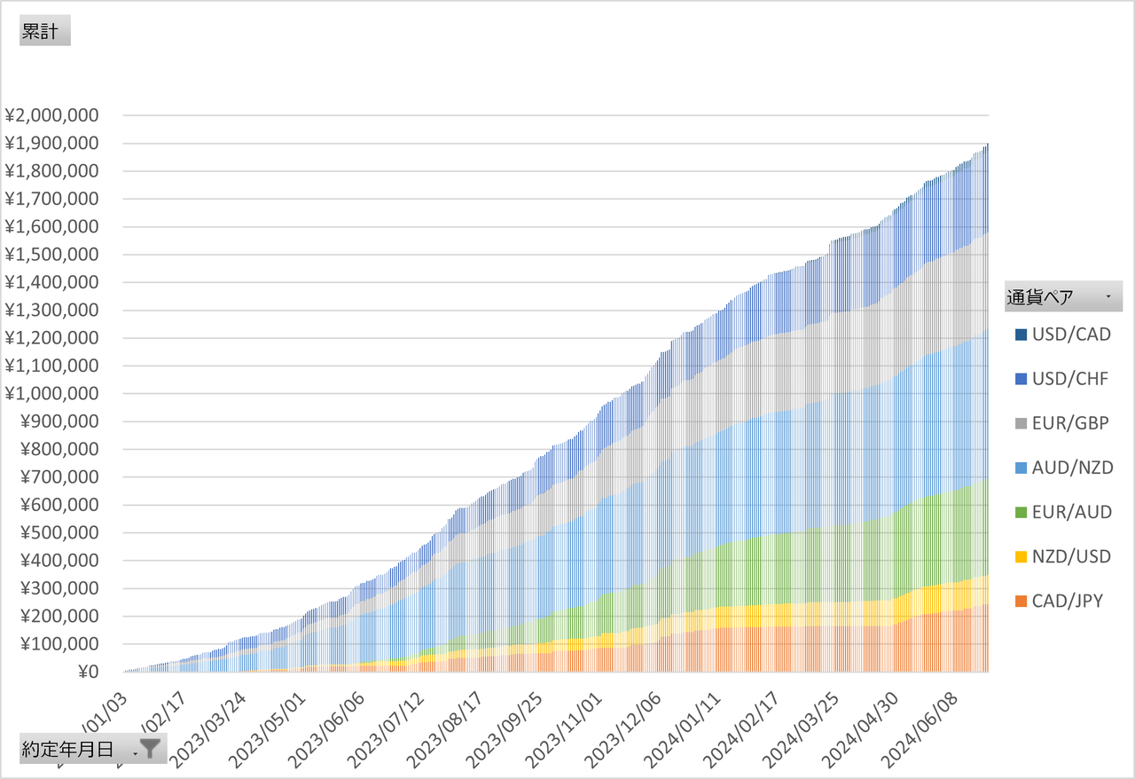 2023年1月からの積みあがっていく利益の推移を公開します。