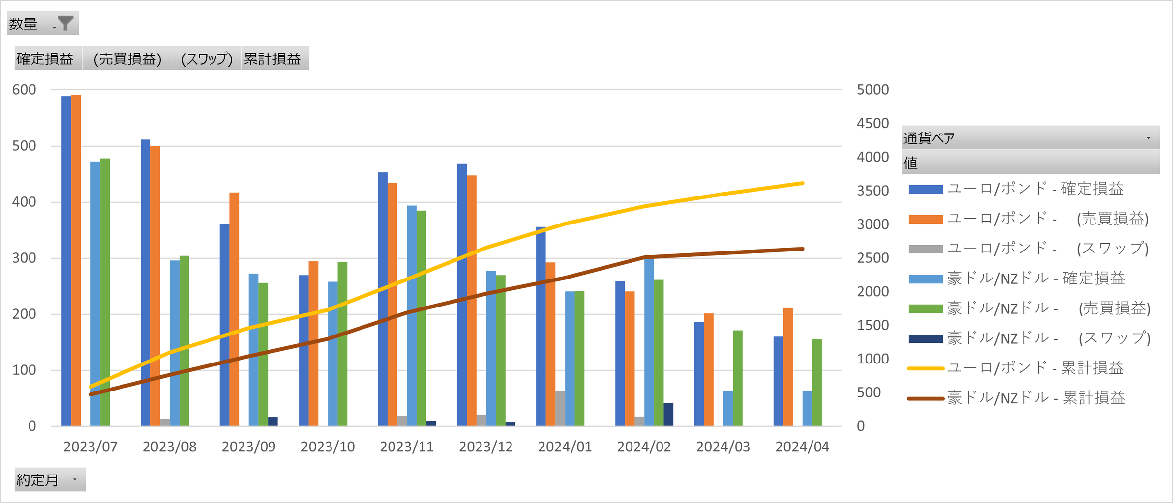 ・AUD/NZD:バランス型の月ごとの評価損失
