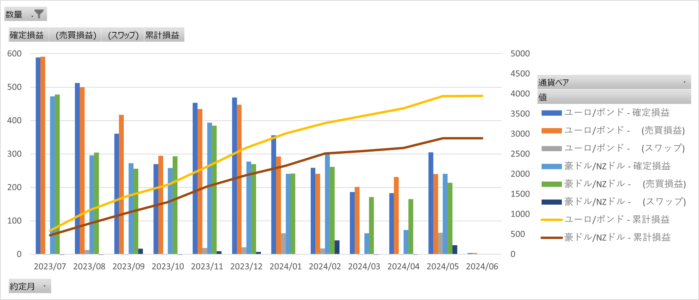 ただ、2024年3月、4月は2つの要因で、確定損益500円を大幅に割り込み250円程度でした。