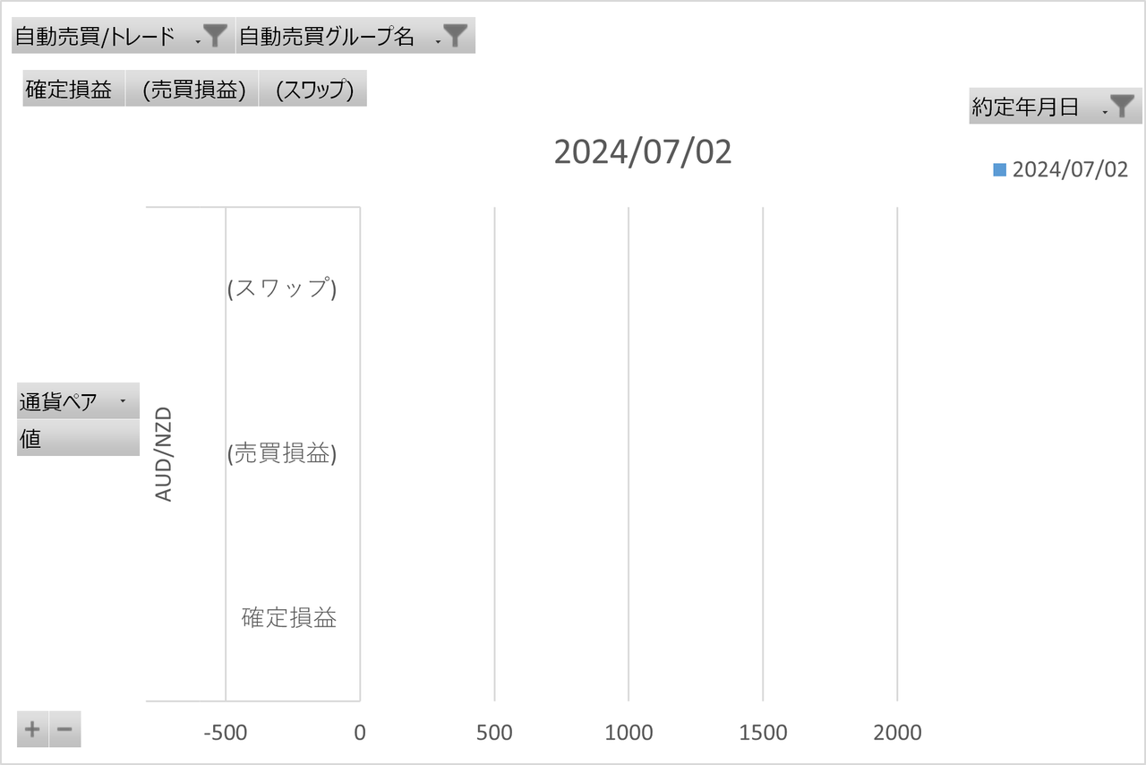 トラリピ、松井FXと同様に確定損益と内数としてスワップ、売買損益を表示します。