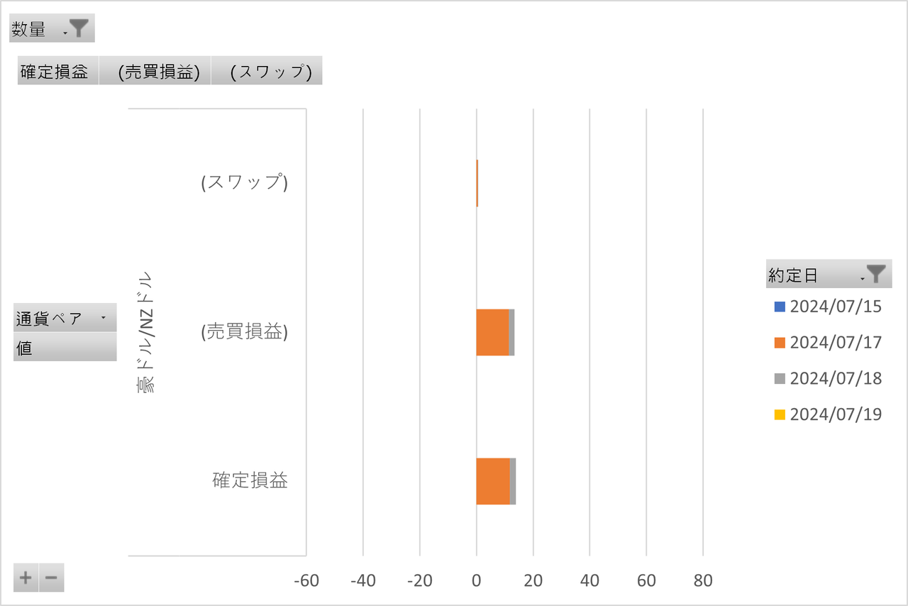 豪ドル/NZドルが豪ドル高を継続し、日に日に含み損が増えていっている印象ですが、いずれ豪ドル安に転換するときがくるまで、我慢の期間と考えます。