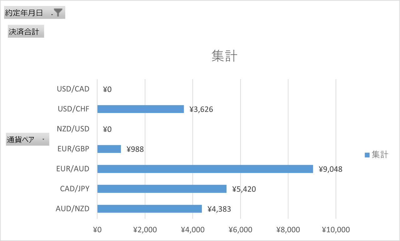 1週間の確定利益を通貨ペア毎にグラフ化しました。