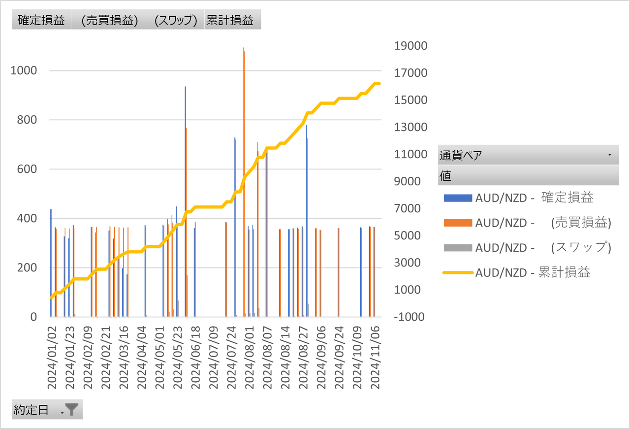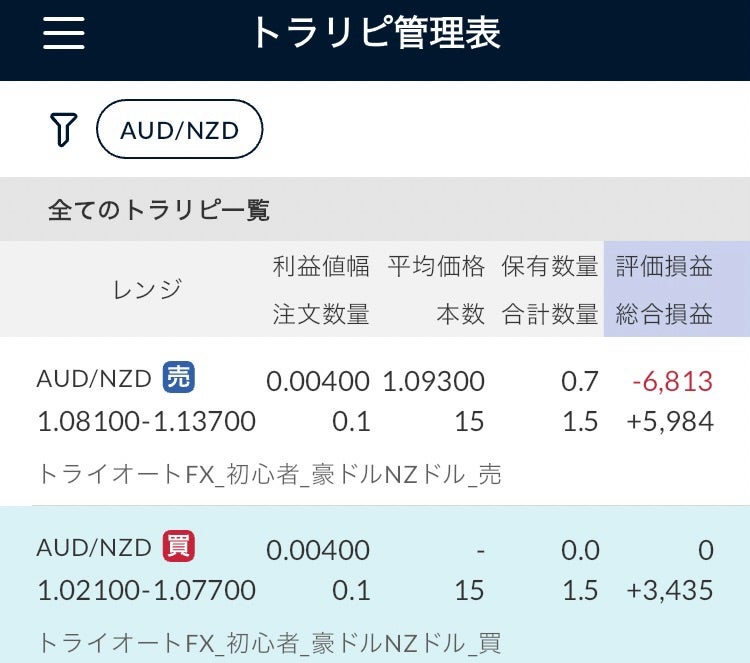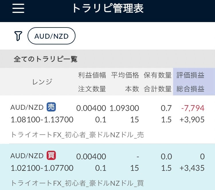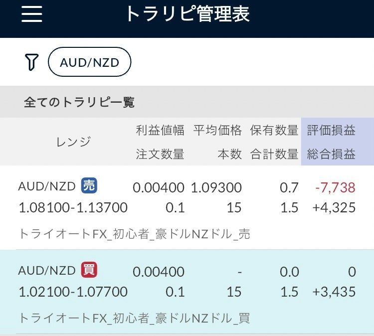 本来、AUD/NZDはボラティリティが高く、レンジ相場を形成しやすいため、リピート型の自動売買に向いており、月数千円のポテンシャルはある通貨ペアのはずです。