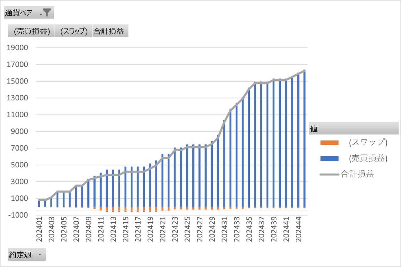 今週は利確額は366円、2024年1月1日からの累積利確額 16,240円です。