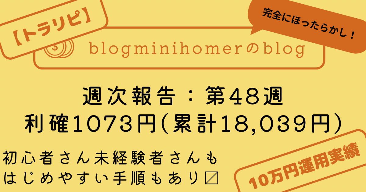 3.トラリピ10万円運用の1週間の利益(48週目)