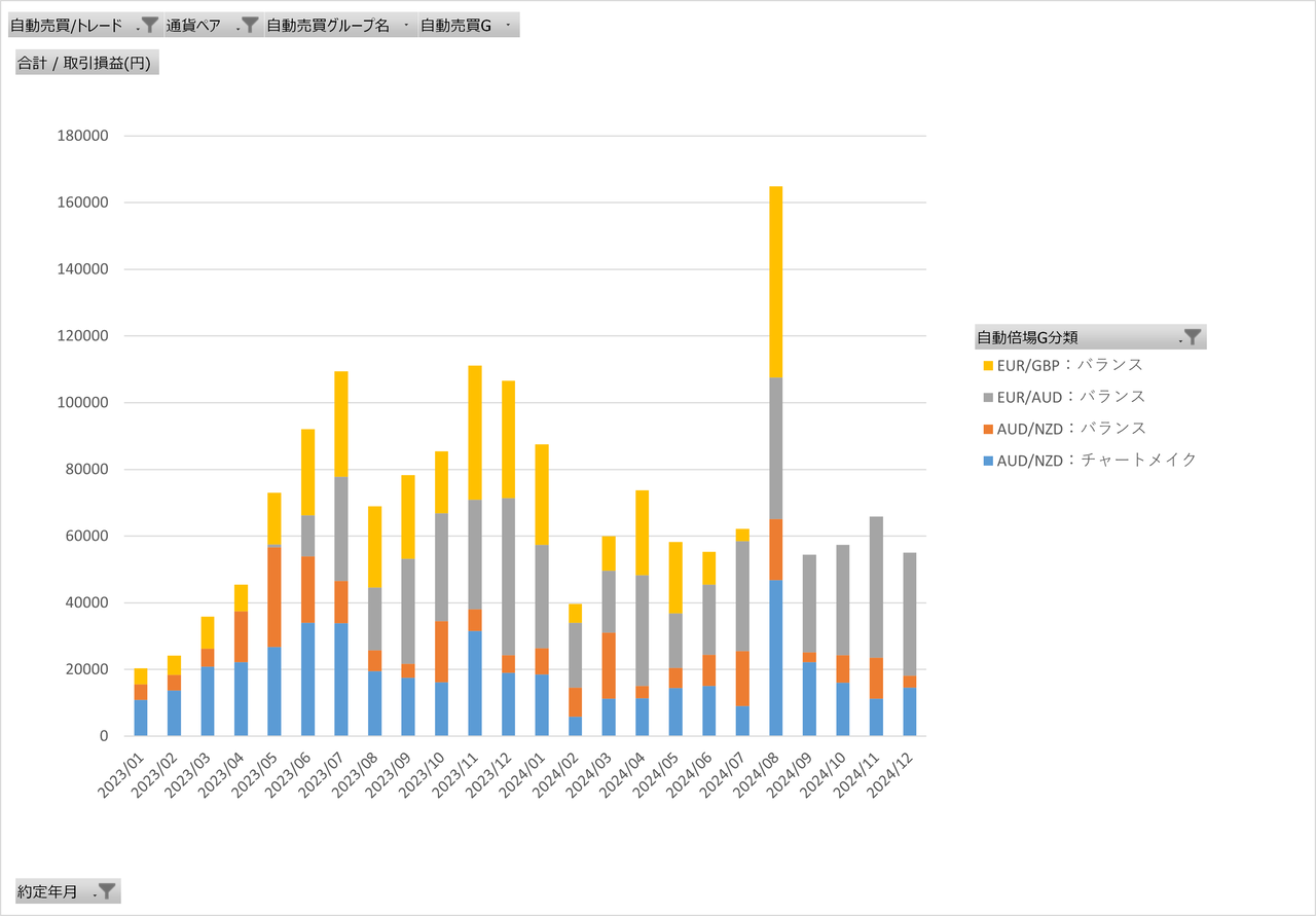 2024年2月頃からEURGBPがレンジを外れ始めてましたので、利確額が減少していました。