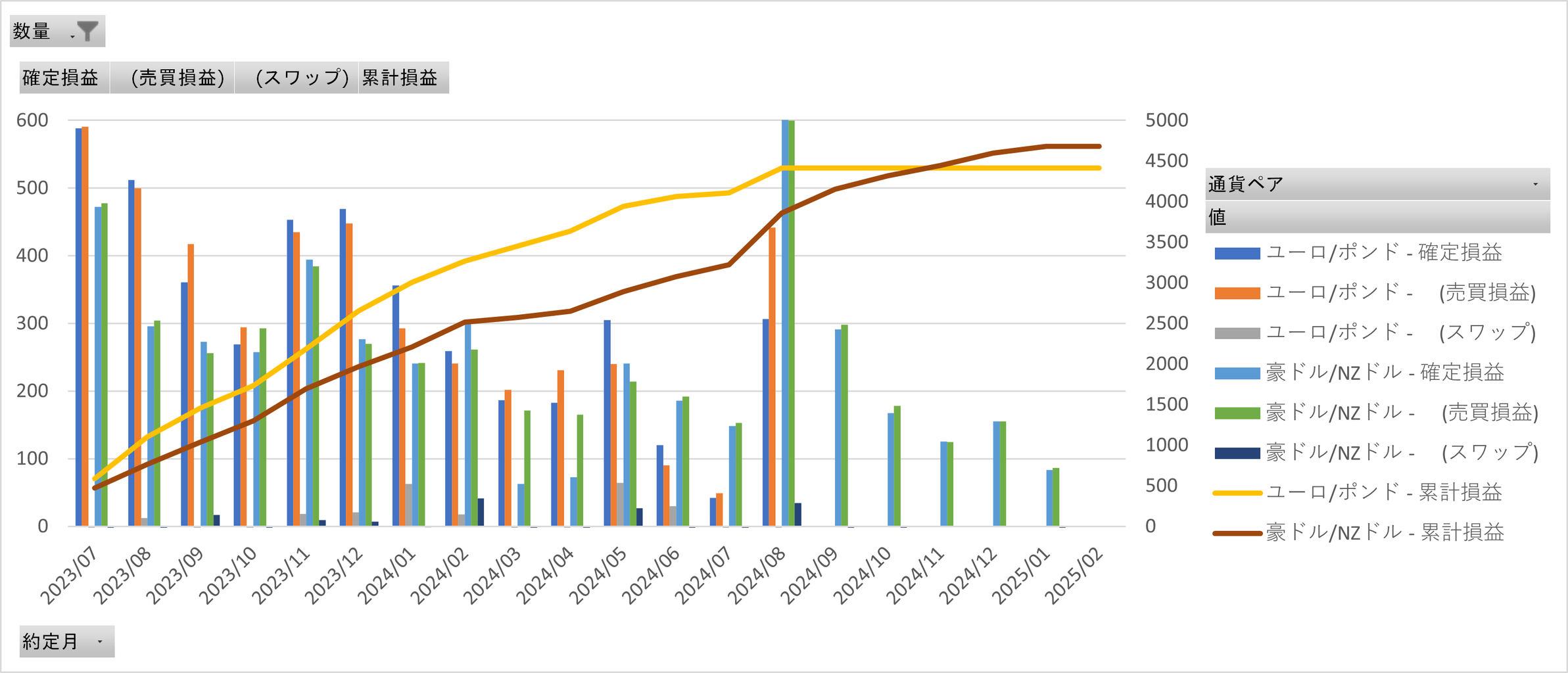 ユーロ/ポンドと豪ドル/NZドル合わせてほぼ毎月500円以上稼いでくれてます。
