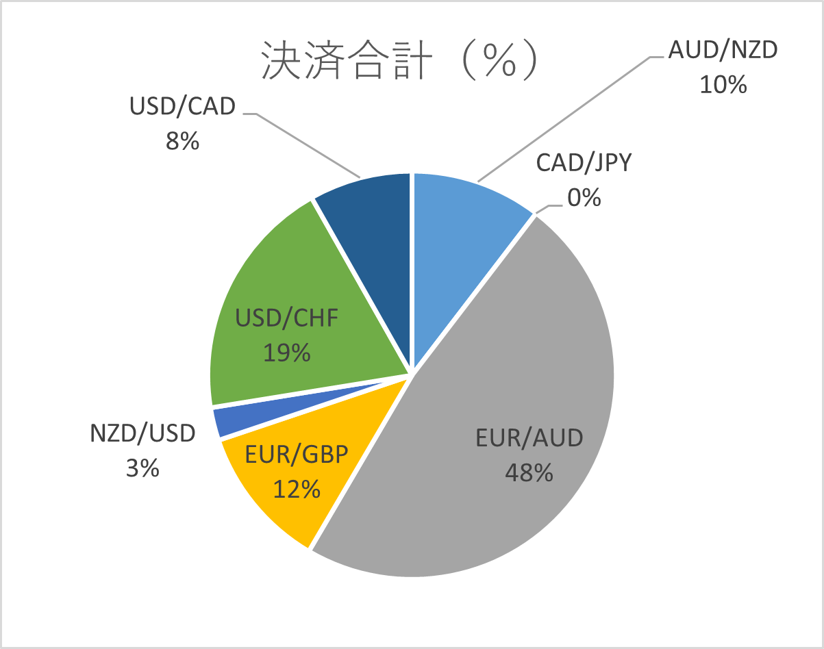 決済額合計を占める割合的にも、EUR/AUDが半分を占める結果となりました。