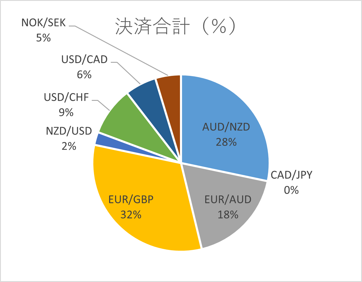 決済額合計を占める割合は、AUD/NZD、EUR/GBPで3割を占める結果となりました。