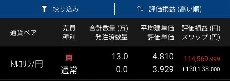 2025年3月28日時点のトルコリラ円の保有状況をさらします。