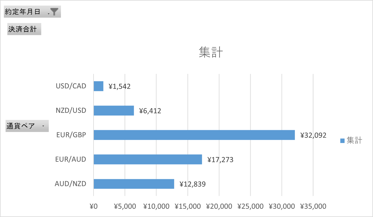1週間の確定利益を通貨ペア毎にグラフ化しました。