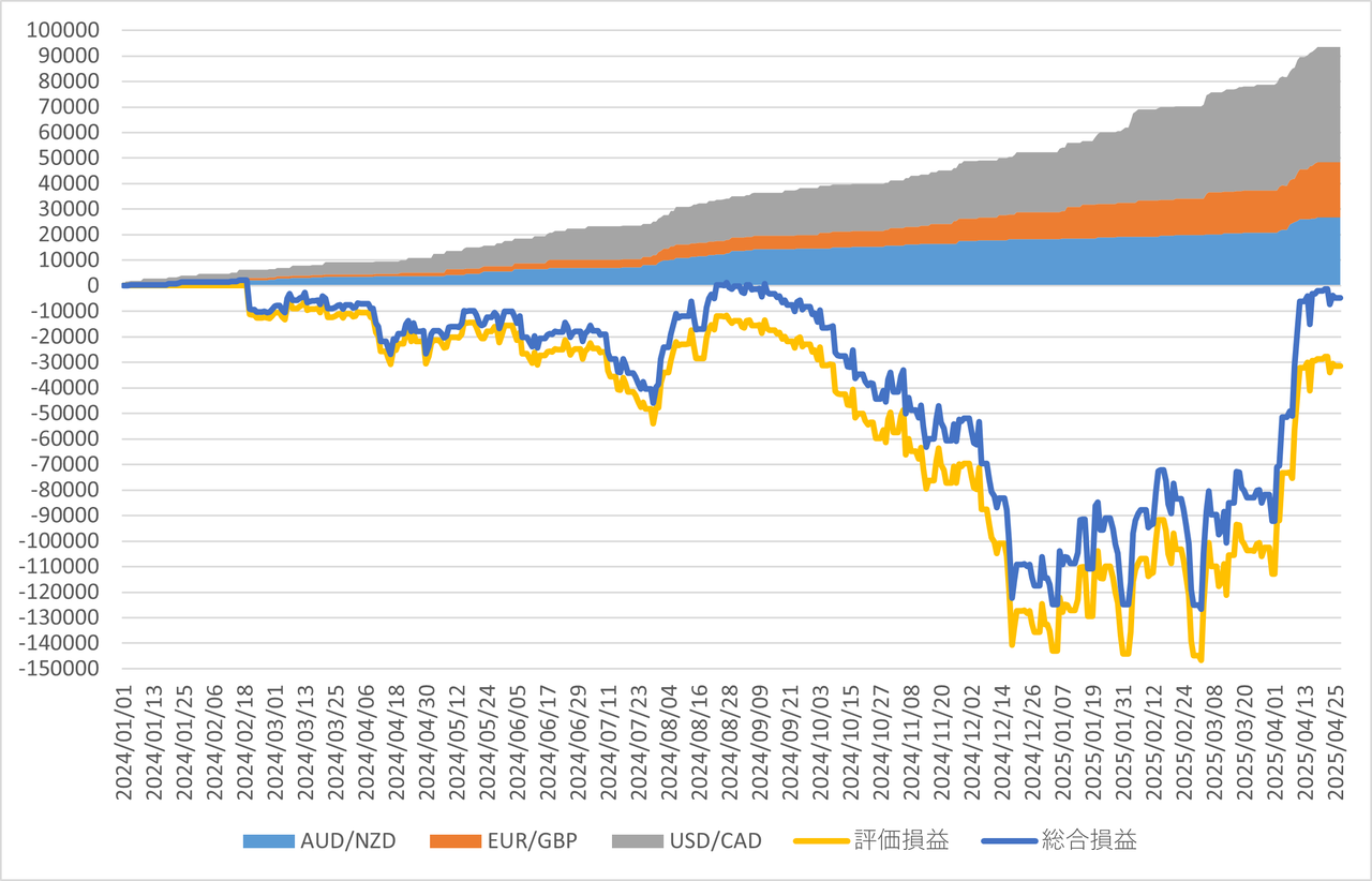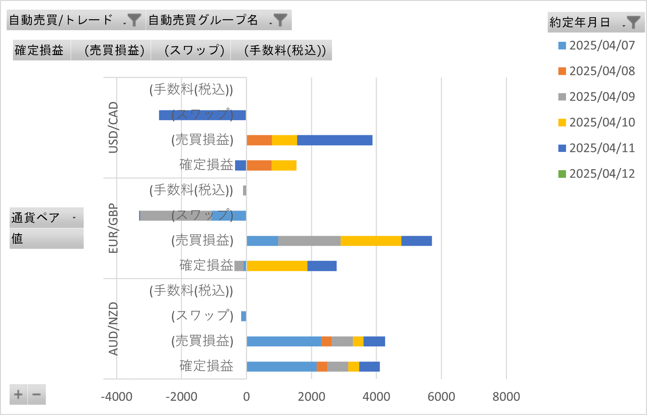 EUR/GBPは一転してユーロ安にトレンドが変化したようですが、引き続き含み損は減少傾向です。