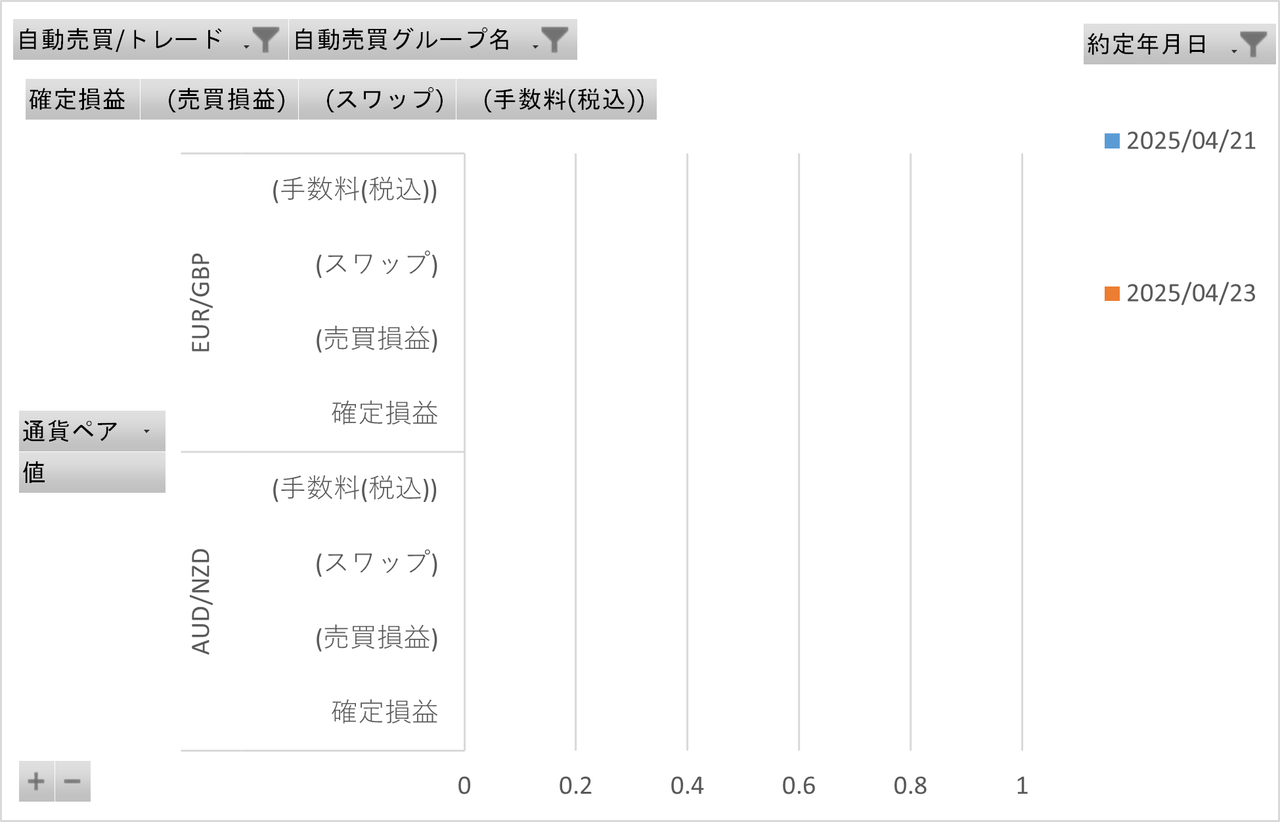 今週は決済はUSD/CADに0件、EUR/GBPの0件、AUD/NZDの0件という結果でした。