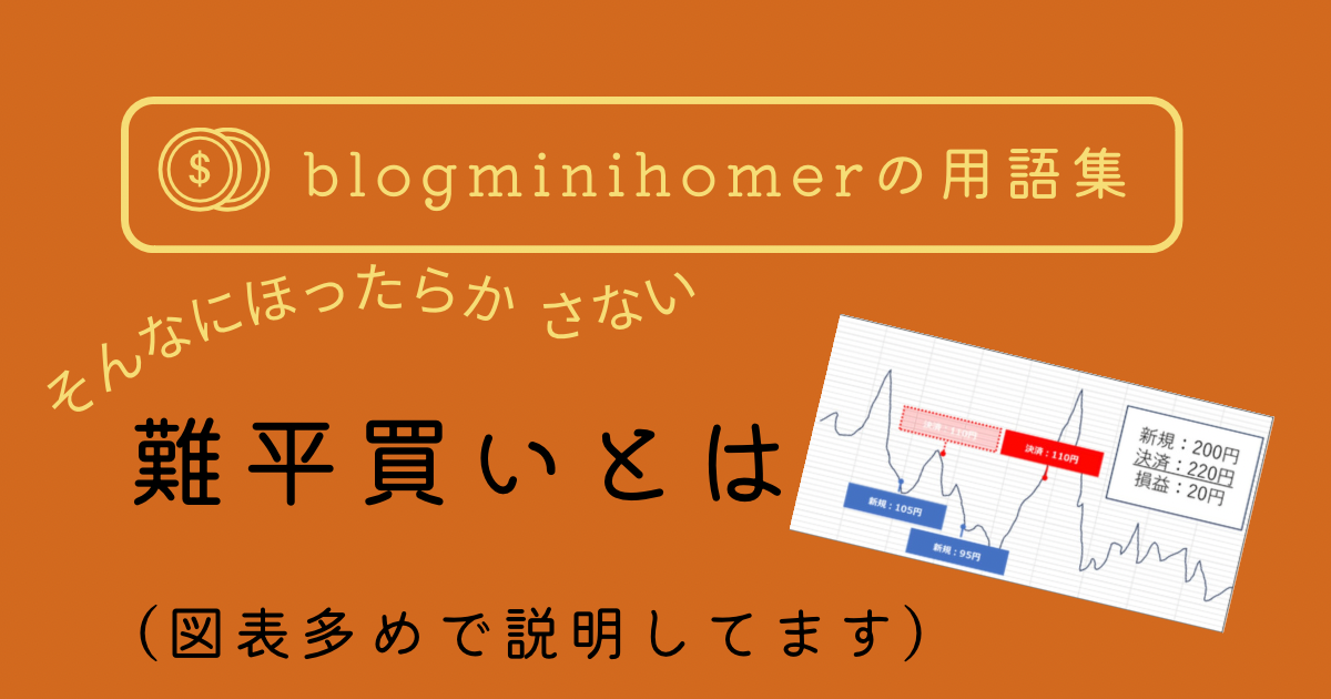 難平買いとは、ナンピンガイと読み、難とは損のことを表し、損(=「難」)を「平」均化する為にさらに「買い」増す売買手法のことを指します。